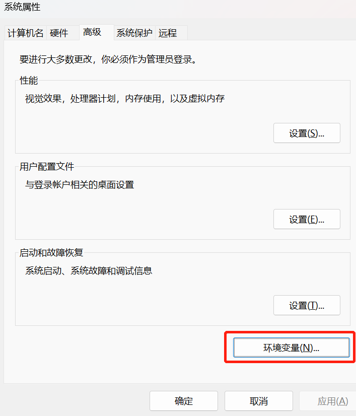 全局搜索环境变量--->编辑系统环境变量--->环境变量