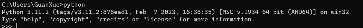 (2)输入python后回车,出现你安装的python版本就说明安装成功,且环境变量已经配置成功!(3)输入print(‘hello world’),开始你的python学习之旅。