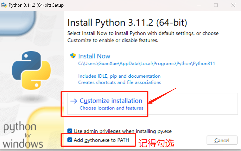 注:勾选Add Python * to PATH,方便自动给你配置好环境变量