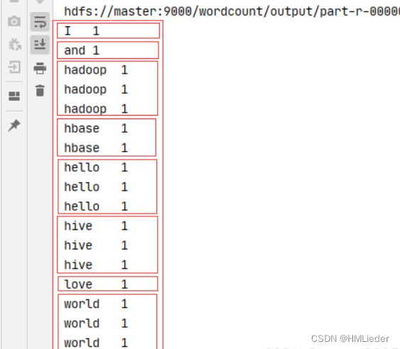 当引入Reducer组件后,输出结果文件内容就是Reducer的输出key和输出value