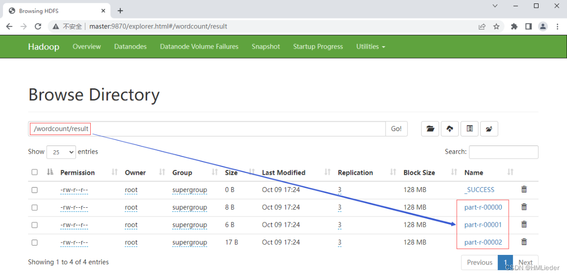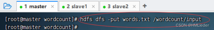 创建/wordcount/input目录,执行命令:hdfs dfs -mkdir -p /wordcount/input