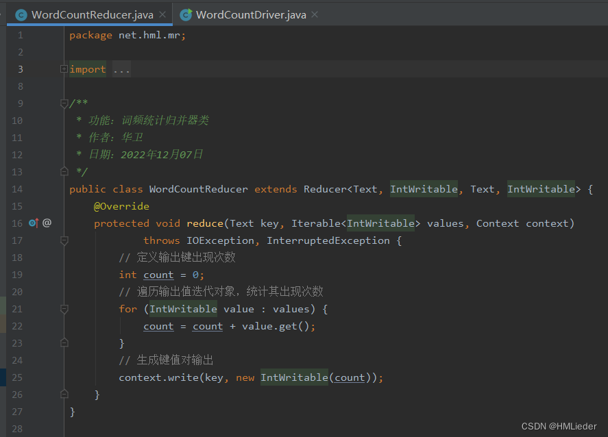 public class WordCountReducer extends Reducer<Text, IntWritable, Text, IntWritable> {