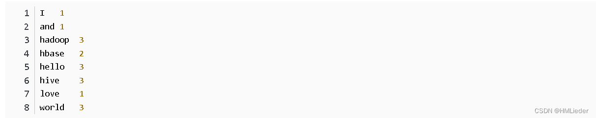 对于这样一组键值对,我们需要Reducer组件来进行归并处理,结果如下所示