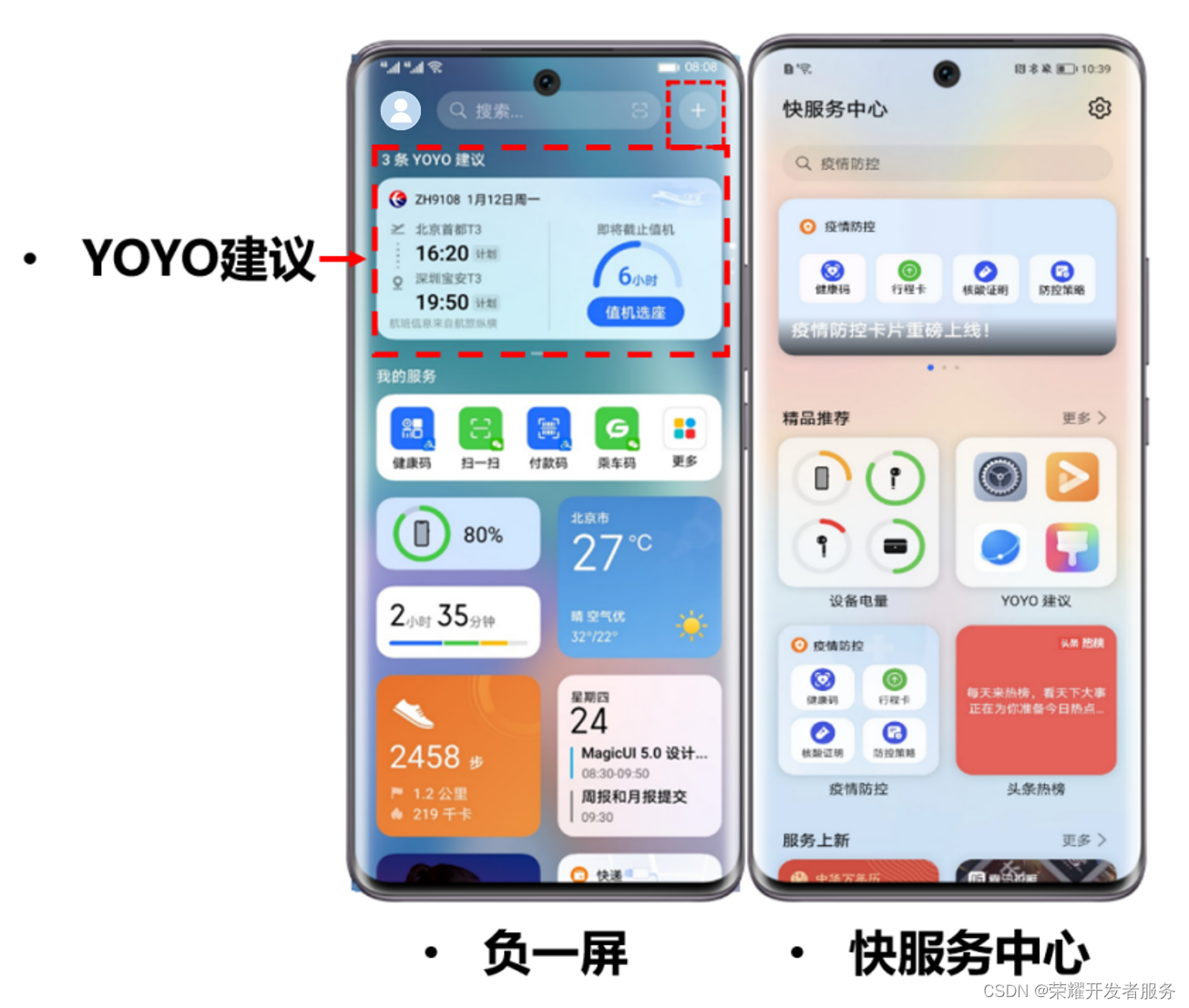 4、内容接口服务:服务以卡片或语音方式呈现,卡片由荣耀侧提供,开发者按照荣耀接口规范,开发内容接口。