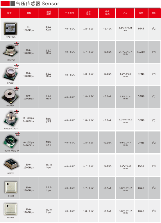 为了适应现代电子设备对小型化的追求,华普微传感器采用了紧凑的封装设计。例如,HP303S采用了LGA-8封装,尺寸仅为2x2.5x1mm,便于在手持卫星终端等小型设备中集成。