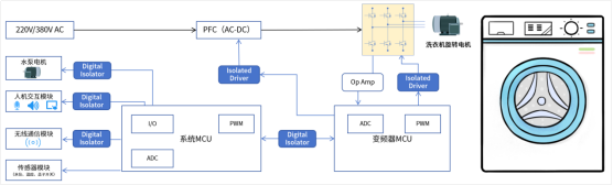 数字隔离器,变频洗衣机的高效电气隔离方案