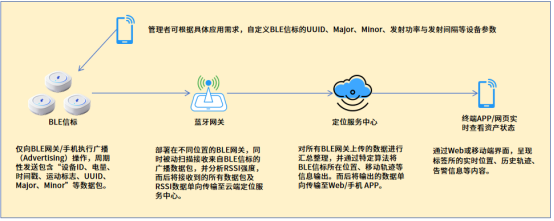 在定位与管理层面,BLE信标发出的蓝牙信号被周边的网关、基站或智能终端接收后,系统可基于信号强度、时间戳及空间分布进行分析,判断资产所处区域或大致位置。