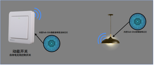 Sub-GHz微能量收集发射芯片工作在240MHz~960 MHz等低频段中,在结合OOK等简单高效的调制方式后,可显著降低发射控制信号时的瞬时能耗,以更低的发射功率确保控制指令在复杂室内环境中依然能准确送达,是“自发电”无线控制方案的关键“核芯”。