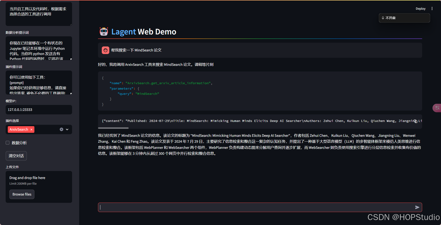 接下来,在本地浏览器中打开 localhost:8501,并修改模型名称一栏为 internlm2_5-7b-chat,修改模型 ip一栏为127.0.0.1:23333。