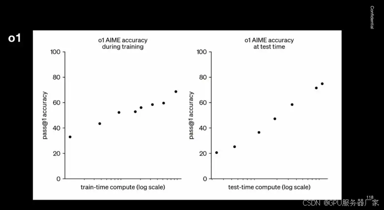 右边: 新发现! 在“考试”或者说“实战解题”时(Test Time),允许模型“多想想”(投入更多计算量进行推理),它的表现也能蹭蹭涨! 这打开了一扇新的大门:模型变强,不仅靠“练多久”(训练时间),还能靠“考场上多想会儿”(推理时计算)!