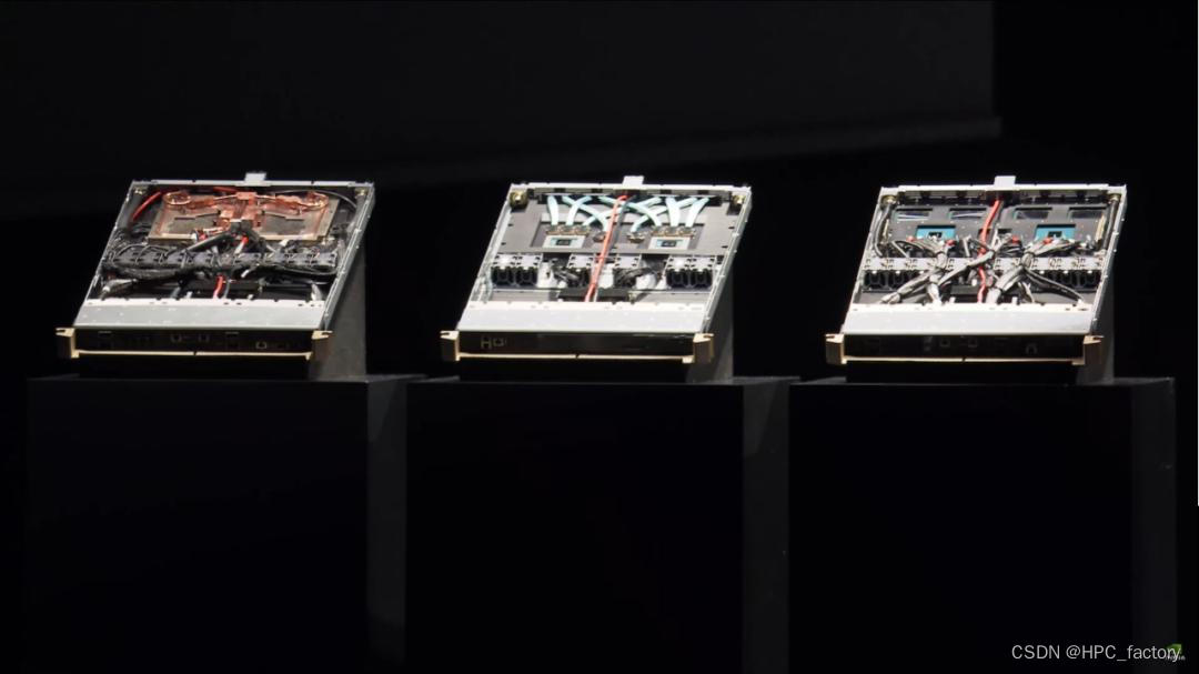 所以今年画风变了现在 DGX 长这样:拥有 5000 条 NVLink 电缆,长达 2 英里,都是铜电缆,不需要光收发器,节省了 20kW 的计算成本。