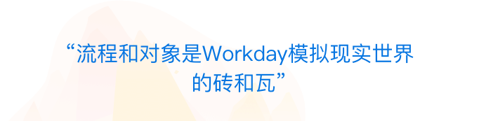 Workday抽象出有限种类的流程和业务对象来模拟整个人力资源工作的现实世界,如果把Workday系统看作一个房子,那么流程和业务对象就是砖和瓦,两种最基本元素的有序搭配就构建出了几乎整个系统。