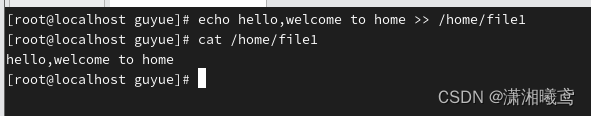 3、在/home/file1文件里面写入内容hello,welcome to home