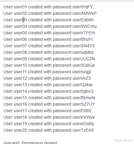 2. 批量添加20个用户,用户名为user01至user20,密码为user后跟5个随机字符
