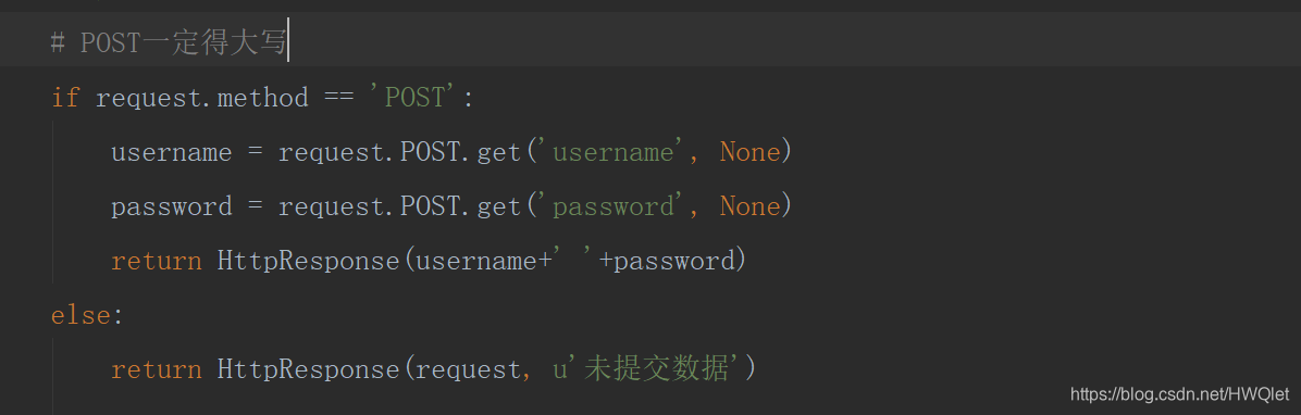 3.views中的视图函数处理这个post请求的POST一定得大写: