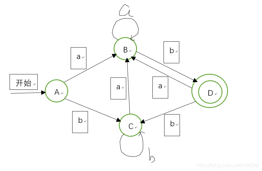 状态转换图是一个有向图,每个节点表示一个状态,每一个状态转换都对应一个弧