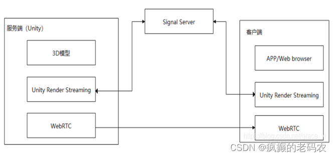 第三次尝试,山重水复疑无路,柳暗花明又一村。正当冥思苦想寻找思路的时候,有人提出有没有云渲染的方法,后来经过一番资料的查找,发现Unity确实有云渲染的解决方案。其核心技术就是Unity Render Streaming,这也是官方提供的Unity云渲染的解决方案。该解决方案的核心思路就是在服务端上产生了大量的业务数据,产生业务数据的生成器和Unity部署在一台机器上,不经过海量数据的网络传递,也不经过大量文件的IO的读写,产生数据的同时直接传递给Unity,通过Unity进行实时消费渲染之后,通过视频流的方式传递到浏览器端,这样就根本减少了浏览器端的消耗,从而达到了效果。
