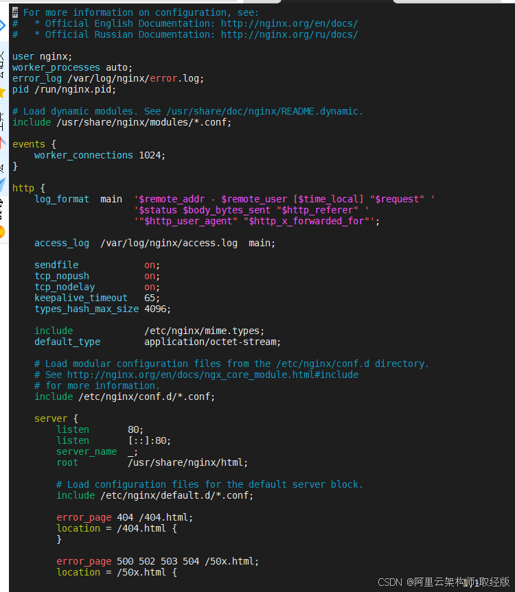 include 文件包含,引用其他地方的ngx配置文件. user指定ngx用户. error_log错误日志 access_log 访问日志