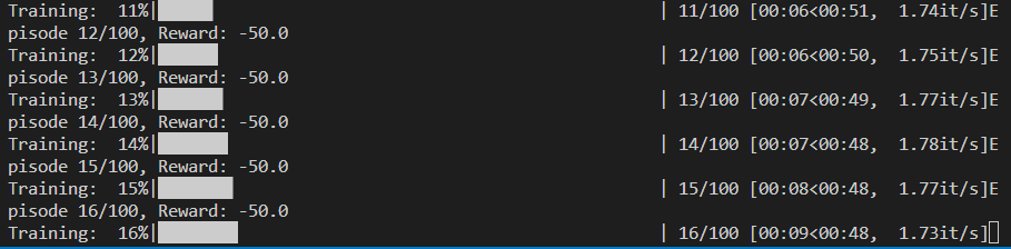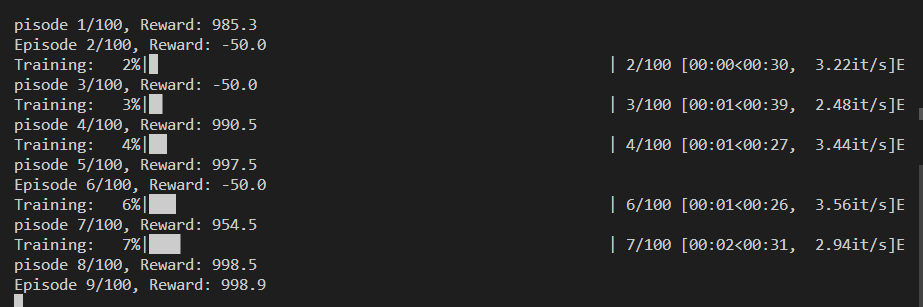 此时包括每局的训练时间都会特别短。(因为一下子就到终点了。)