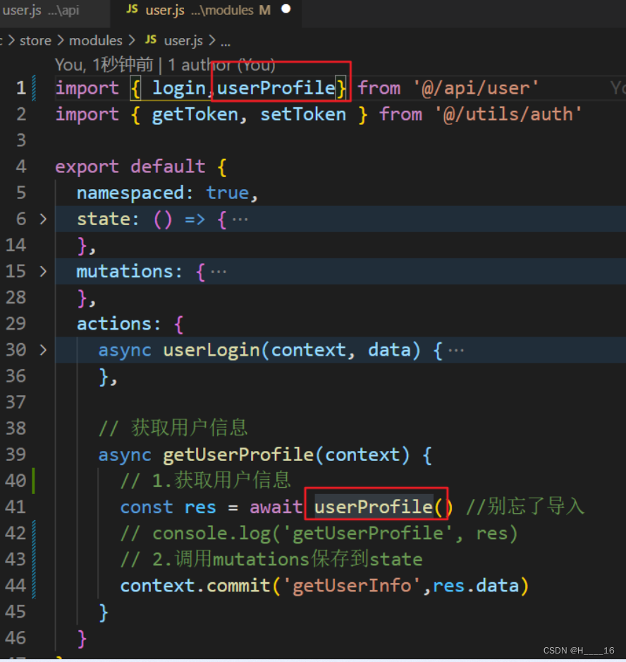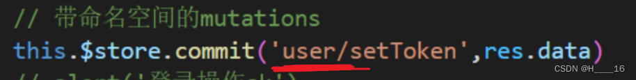 不认识的setToken ,调用mutats中的函数要带命名空间的名字