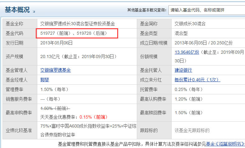 在浏览基金网站的时候,发现一款基金【交银成长30混合】,发现基金代码有一个前端交易代码和一个后端交易代码,本着好奇的心态,了解了下。 好记性不如烂笔头,记录下!