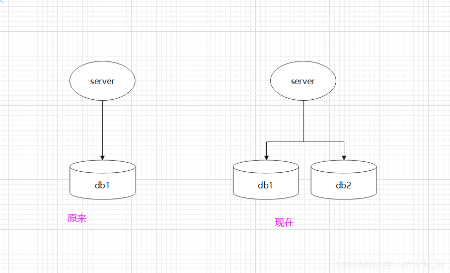 在系统数据达到一定的访问量时,遇到单个数据库瓶颈,所以需要扩展数据库,启用第二个数据源资源,项目架构变成 一个服务对应多个数据源的形式。