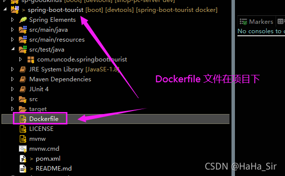 3、项目路径下,创建 Dockerfile 文件 ,添加如下配置: