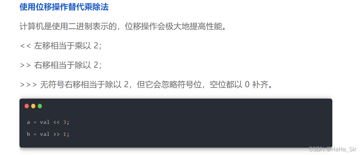 1、在浏览一篇文章时,看到一个介绍 ,使用位移操作替代乘除法 ,若位移多位该怎么计算呢?