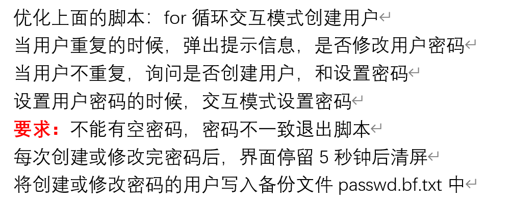 echo "修改成功,将创建新用户" && sleep 5 && clear && echo "用户名: $user 密码: $password3" >> usr_backup.txt
