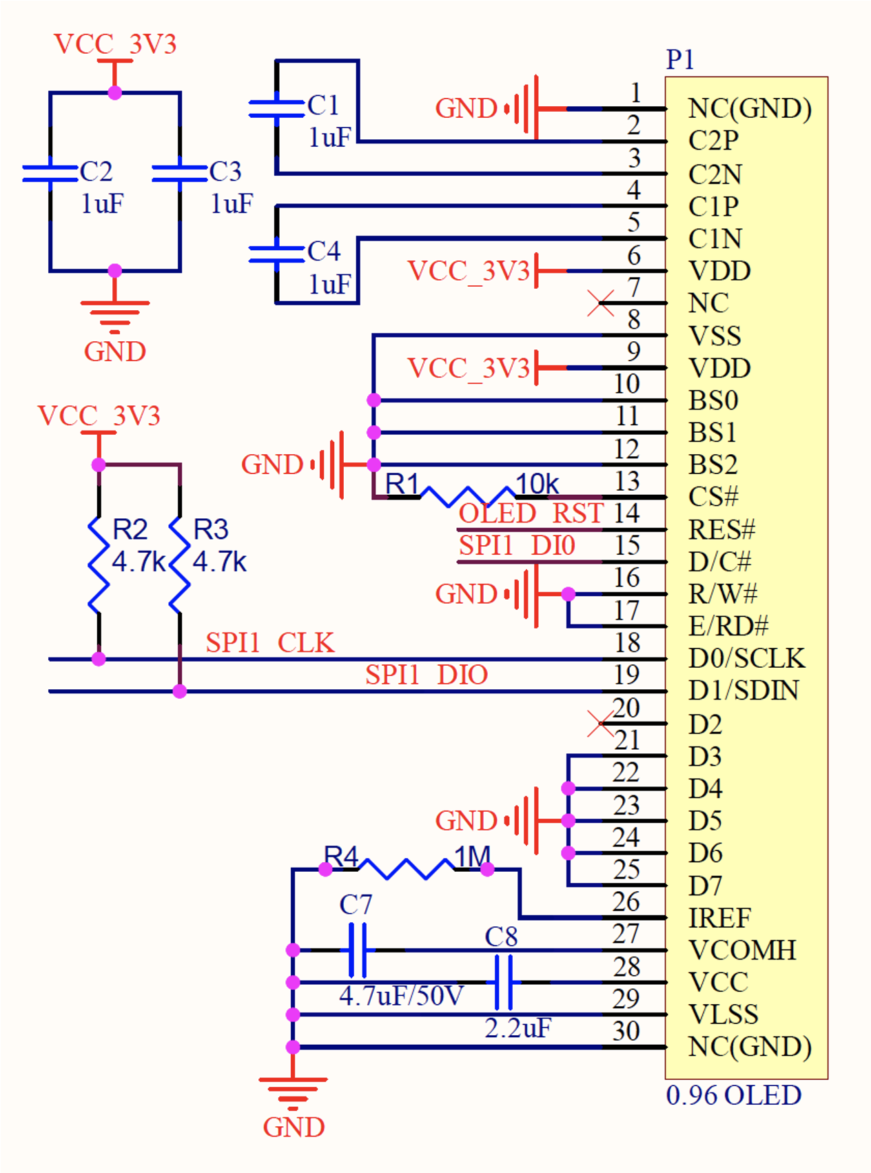 板载OLED原理图: