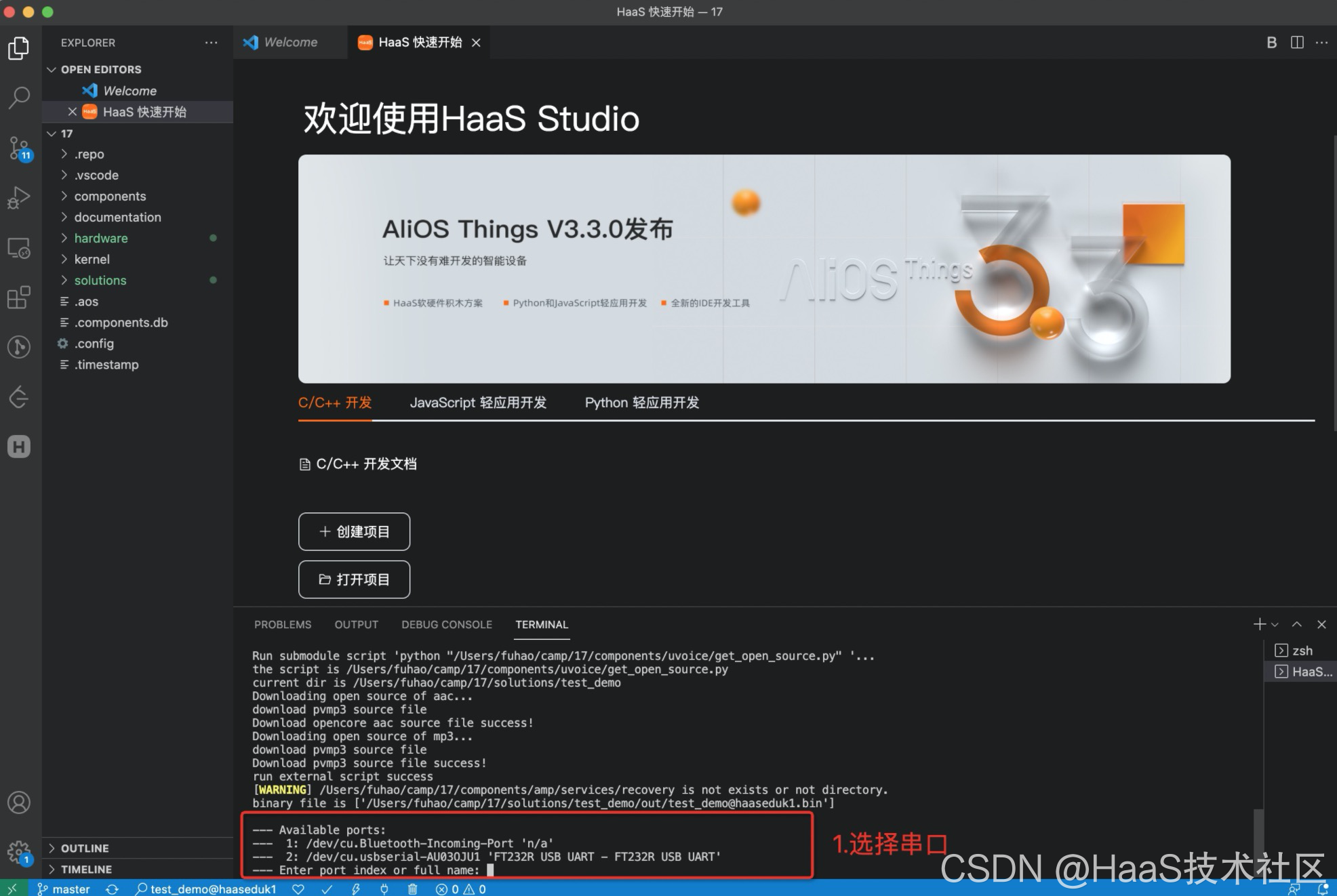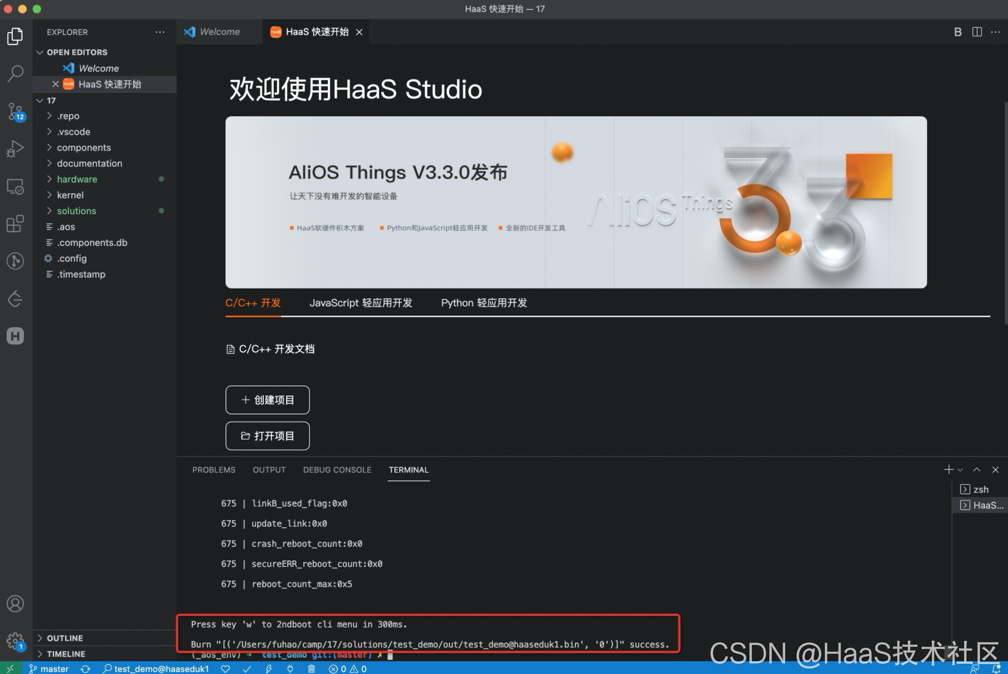 1.烧写支持轻应用的HaaS Edu K1开发板
