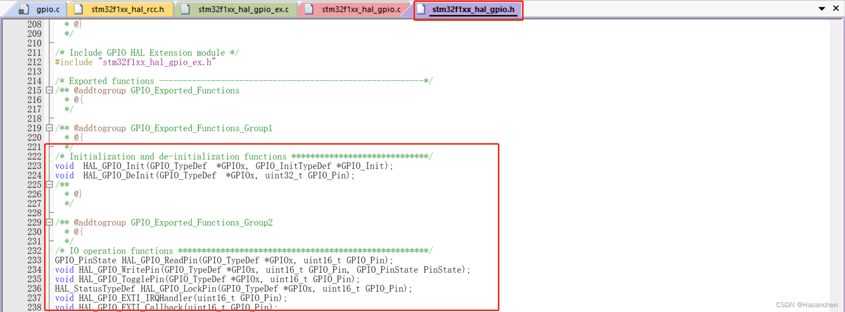 在stm32f1xx_hal_gpio.h中我们可以看到定义的函数
