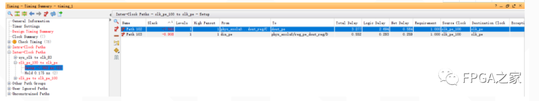 点击WNS或WHS后的数值可以直接找到时序裕量最差的路径: