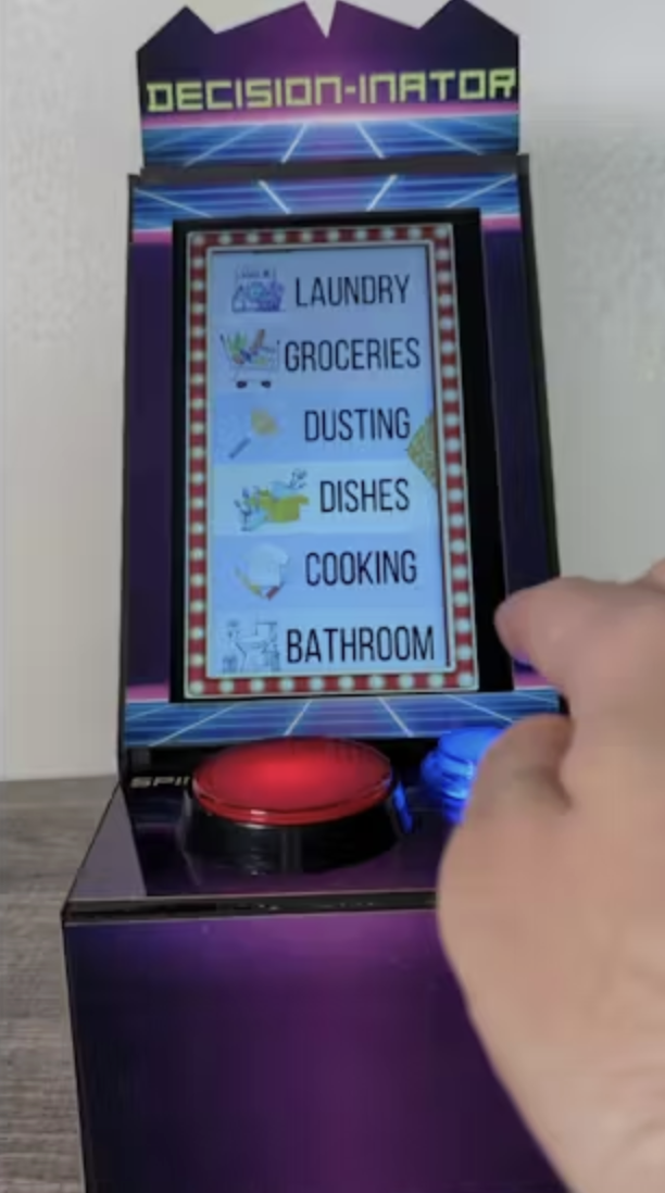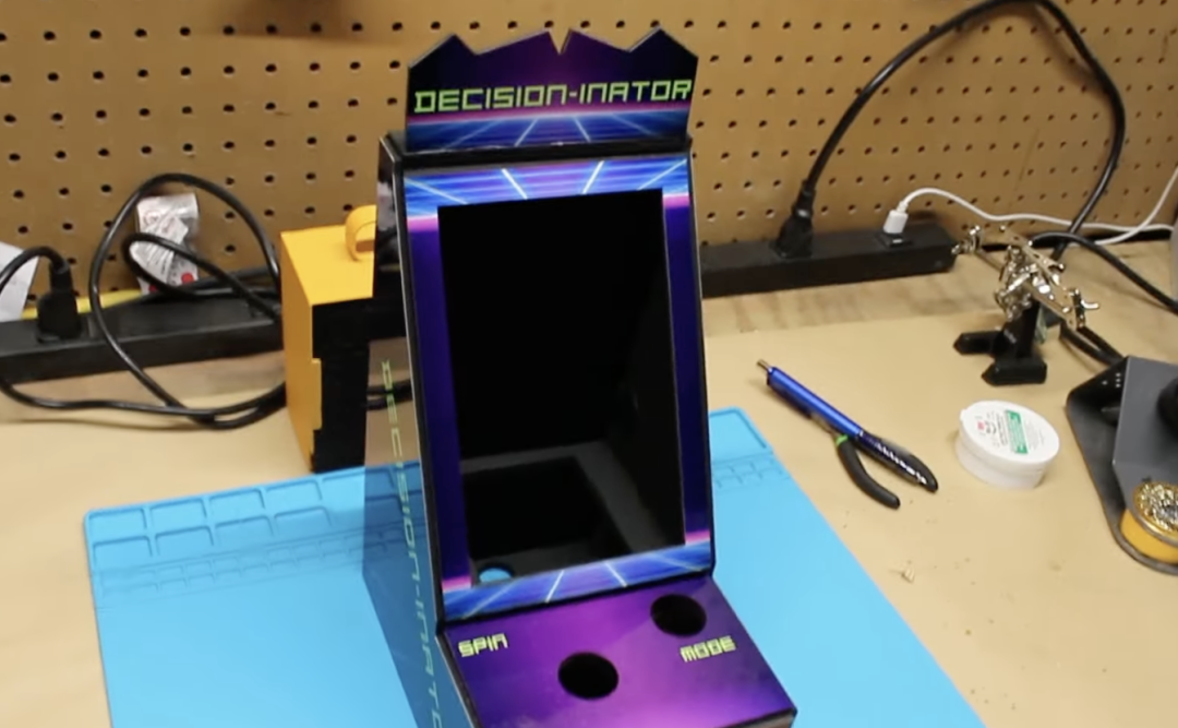 谈及 Decisioninator 这个项目,“正是这台小装置——加上 Flutter、激光切割和一加仑五分钟环氧胶——拯救了我的婚姻”,Makerinator 说道。