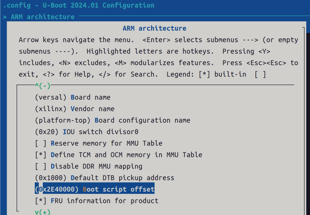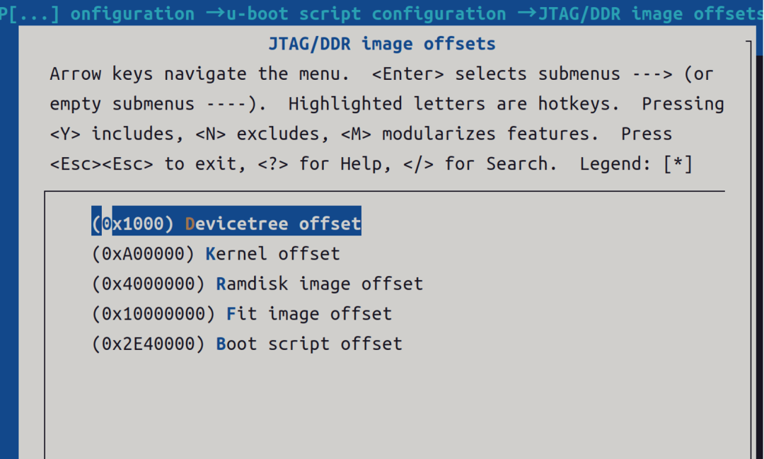 3.在petalinux-config->u-boot Configuration → u-boot script configuration 中的QSPI\OSPI和JTAG配置启动脚本中的偏移位置,这个需要和分区对应起来;