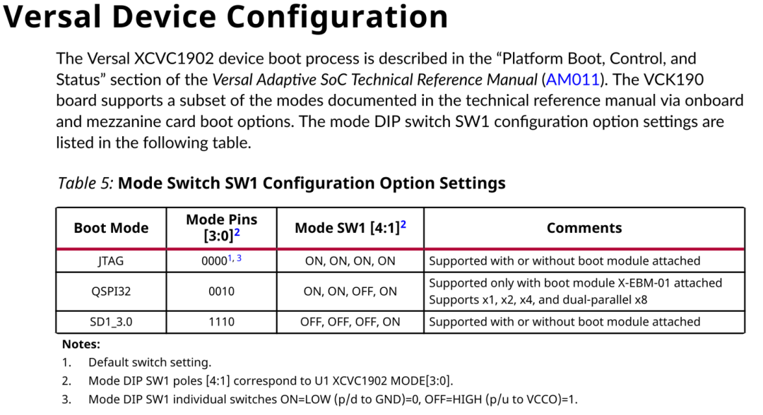 根据UG1366将VCK190配置成QSPI32启动方式进行启动,具体如下: