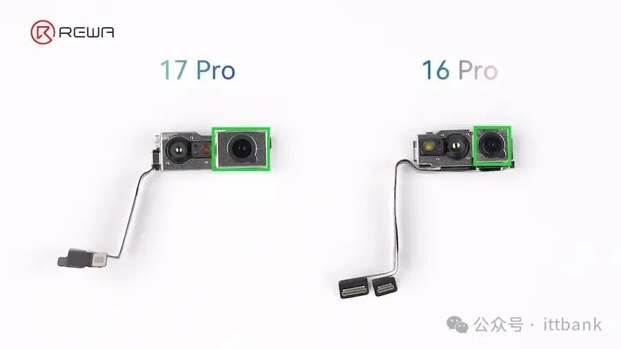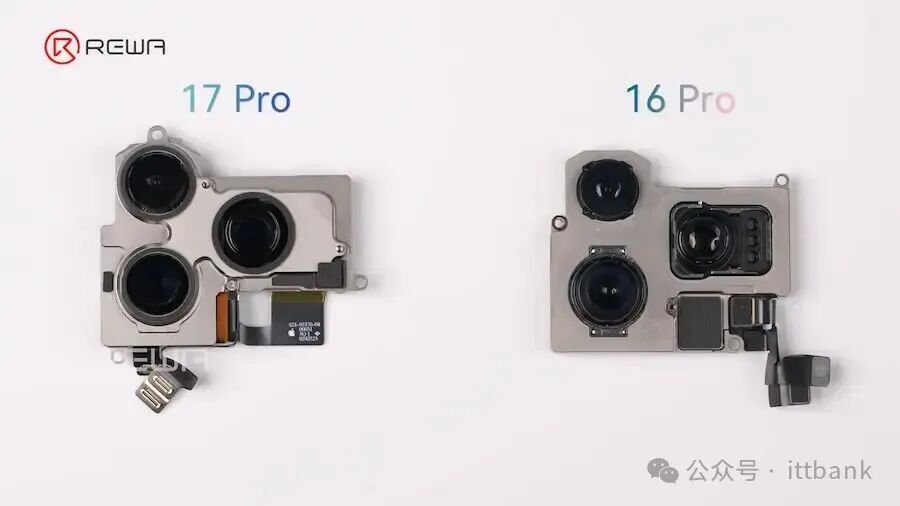 对于 iPhone 相机影像系统一向是 Pro 系列的重点,这次 iPhone 17 Pro 在前后镜头升级幅度不小,与前代 iPhone 16 Pro 相比,最明显是在传感器面积明显变得更大,不过这次排线采用更短和更精简设计