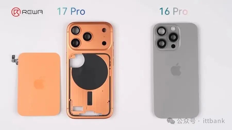 来源:网络素材随着 iPhone 17 系列在全球开卖,维修团队 REWA Technology 也推出首款 iPhone 17 Pro 拆解影片,这次机身拆解报告不只是把机身打开看个热闹,而是揭开了苹果今年旗舰在结构设计与硬体配置上的重大变化。到底 iPhone 17 Pro 除了外观变化外,内部还有哪些新突破?带大家一起揭开最神秘的 Pro 新机的内部结构与设计变化。