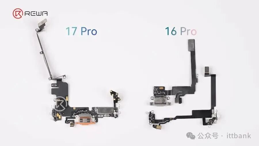 这样的组合,不只让 iPhone 17 Pro 系列内部更整齐,也让主板、电池、散热模组这些大件组装和维修都更有效率,背后其实就是苹果想把「手机高集成度」玩到更极致境界。