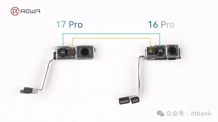另还有一个隐藏变化,就连同 iPhone 17 Pro 系列 Face ID 模组点阵和泛光照明位置也左右对调,且 REWA Technology 团队还尝试将前置镜头模组与 iPhone 17 Pro Max 互换,显示苹果并没有将模组绑定在机身。