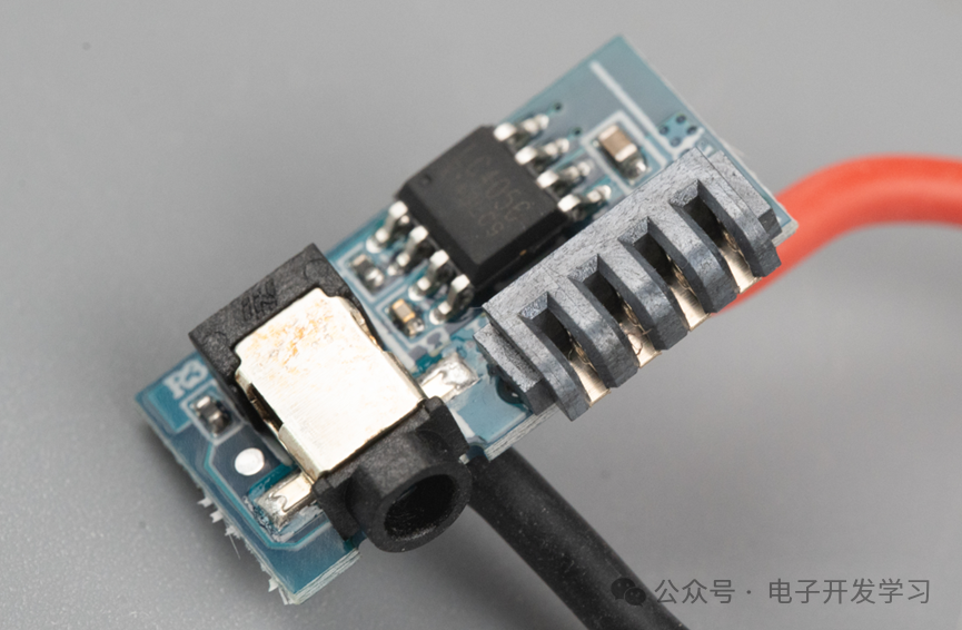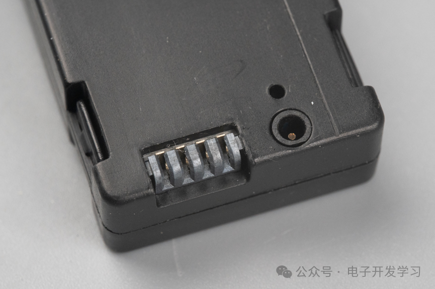 这个电池放电口旁边有一个圆孔,是用来充电的接口。
