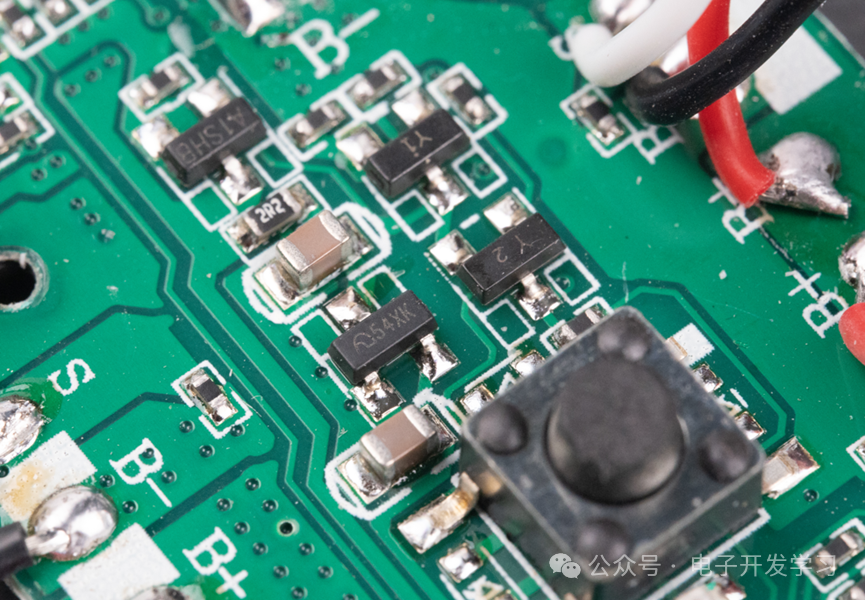 按键旁边的三极管、MOS管是一键开关机电路,另外还有一颗LDO。