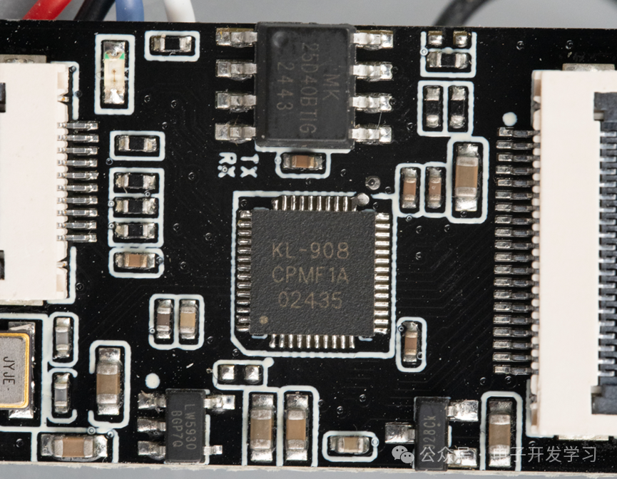 这个板子上接了两个FPC软排线,分别连接到了摄像头和无人机肚子上的光流传感器。