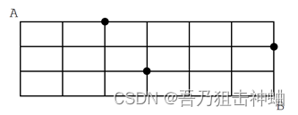 如下图所示,某个街区的道路为网格形状,但由于某些原因,街区中的一些路口禁止通行了。