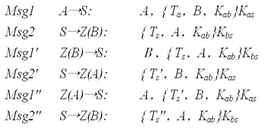 这最终导致攻击者能够从S得到一个“时间戳足够新,但Kab足够老”的消息,并将其发送给B,使B接受一个老的密钥