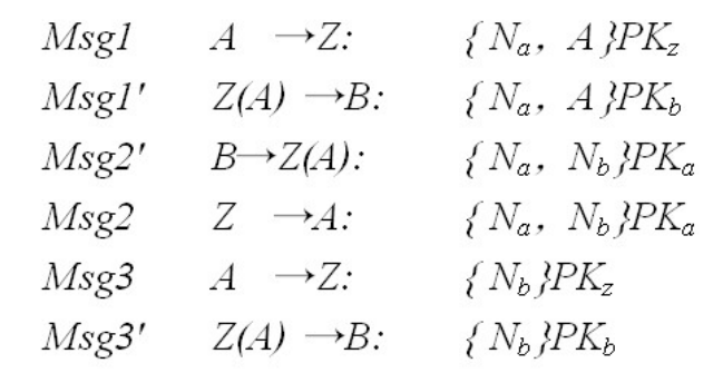 并行会话攻击:攻击者Z首先使A发起一个会话,然后在另一个会话中,攻击者成功地冒充了A。