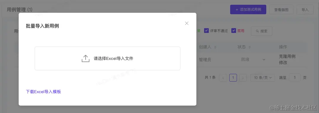 除了录入单个测试用例,还可以通过Excel批量导入测试用例。点击【导入】,调出 批量导入新用例 弹窗。