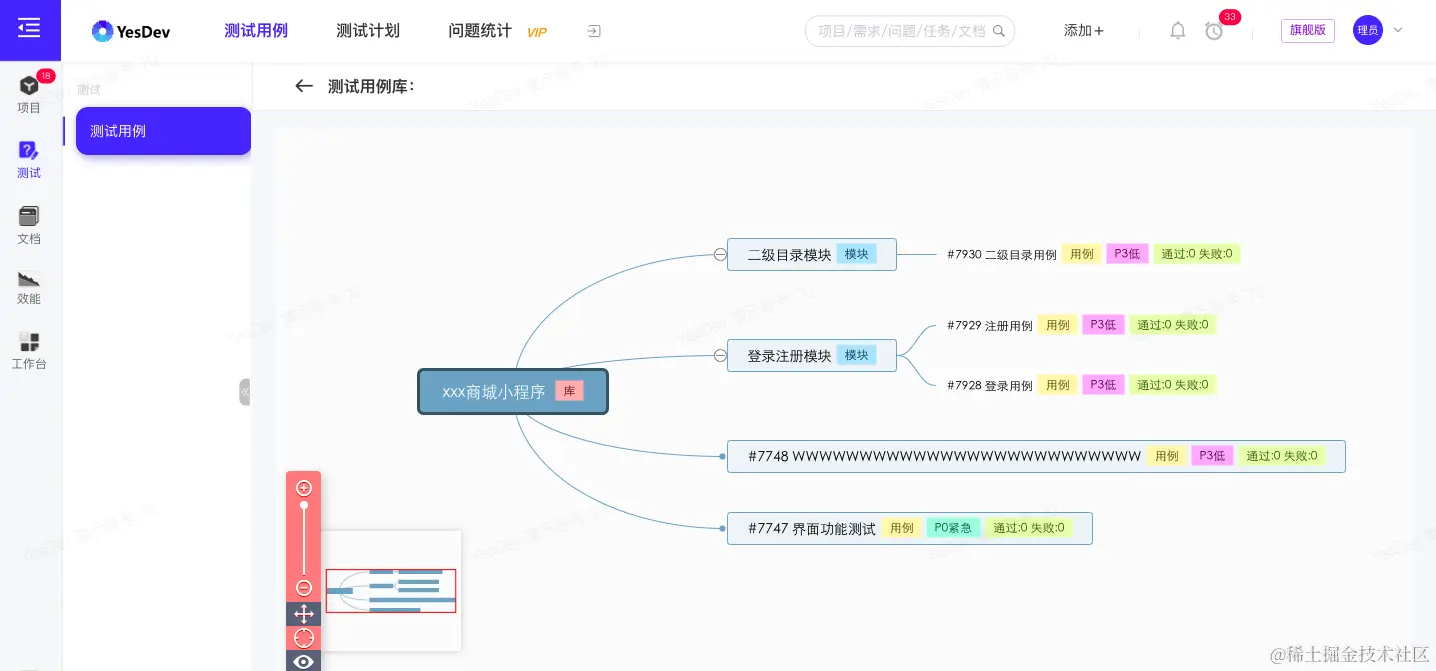 点击【查看脑图】,可以查看该用例库的用例脑图,方便梳理测试思路。