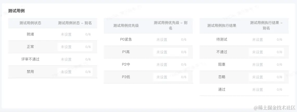 在 管理后台 - 系统高级配置 - 全局别名配置 - 测试用例,可以对测试用例状态、测试用例优先级和测试用例执行结果,进行全局别名配置。