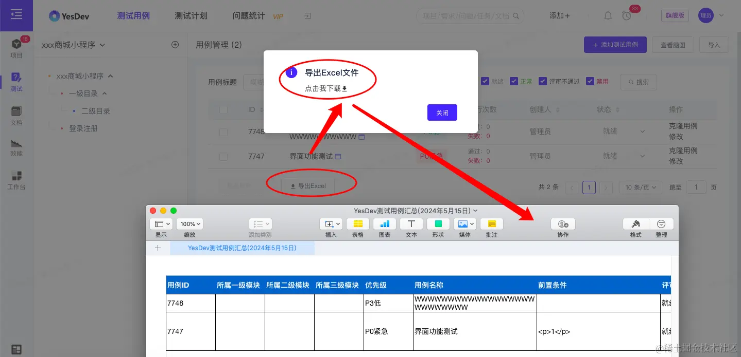 整理好测试用例Excel文件后,保存后,点击【选择Excel导入文件】上传导入到YesDev。